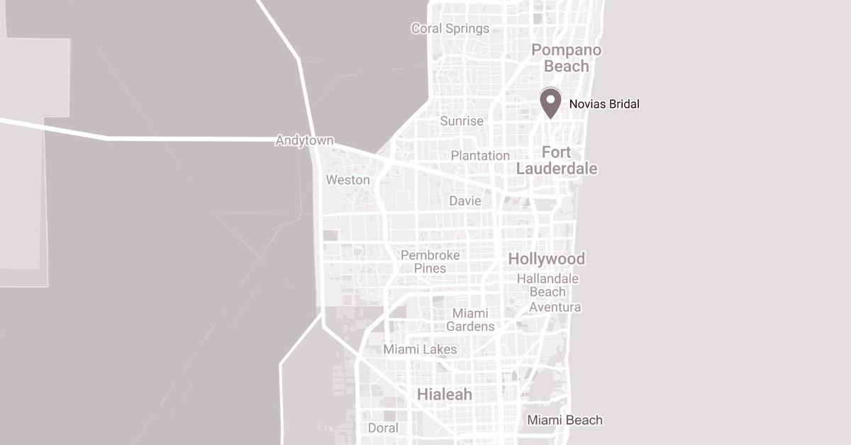 Novias Bridal is located 15 minutes away from the Ft. Lauderdale airport, 25 minutes from Aventura Mall, and 40 Minutes from the Miami International Airport.
